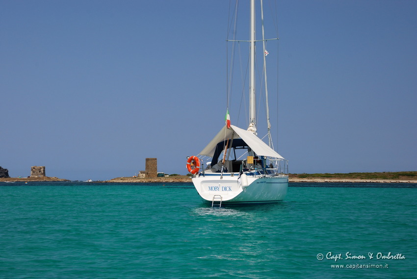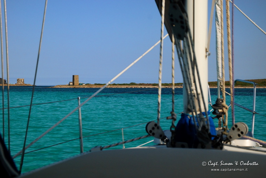 E' la mattina di venerdì 6 agosto quando decidiamo di lasciare la boa a Cala del Bianco e chiudere la nostra visita all'Asinara, coi suoi splendori emersi e deserti immersi. Le previsioni non son certo di bonaccia e visto lo scherzetto già subito nella traversata tra Corsica e Sardegna, quando i 10-16 nodi previsti si son tramutati in 25-30, non siamo poi certi dei 20-25 di maestrale che ci dovrebbero attendere... In ogni caso, visto che la meta è Porto Torres, il percorso sarà breve e sempre ridossato dalla penisola di Stintino. Quanto meno sarà solo vento, mare formato non lo troveremo certo. La scorta d'acqua poi è ai minimi, nonostante le gentili donazioni di White Passion ed Archimede. Quindi ok, si parte!