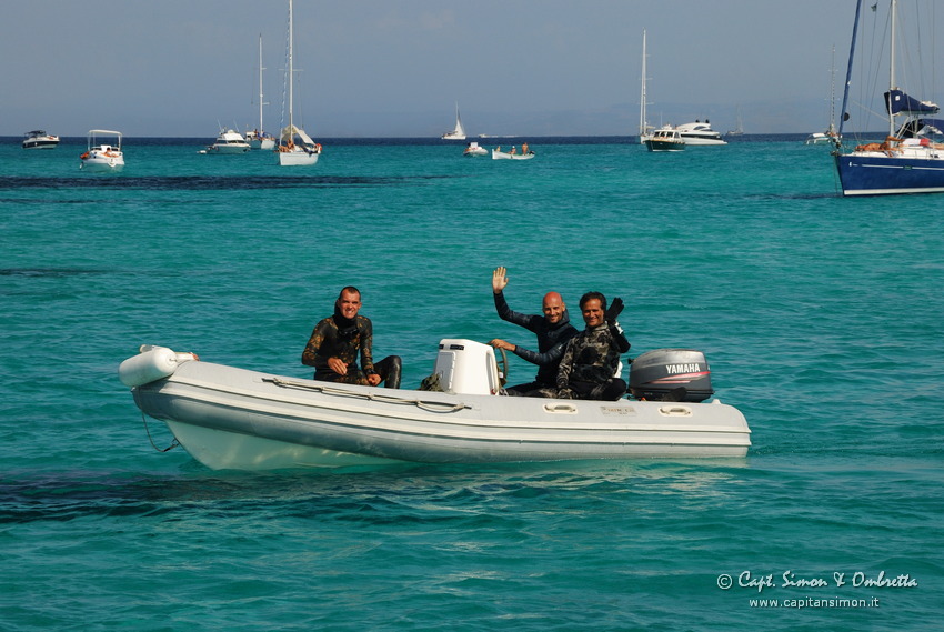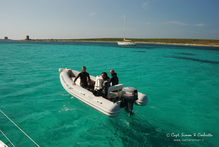 che ci raggiungono in tarda mattinata. Bello ritrovarsi proprio qua, sul mare!!! :-D Dopo un pranzo leggero riparati dal tendalino, mentre le donne si dedicheranno alla tinarella a bordo di Moby Dick, noi abbiamo in programma una bella pescata dal gommone, fuori da Punta Falcone: