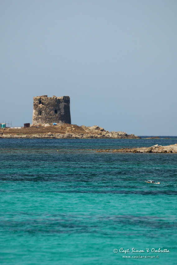 Poi, come nostro solito, si bighellona parecchio col tenderino, rimirando da vicino la celeberrima torre della Pelosa e uscendo dal passaggio sotto Capo Falcone: scogliere imponenti ed acqua blu mozzafiato!