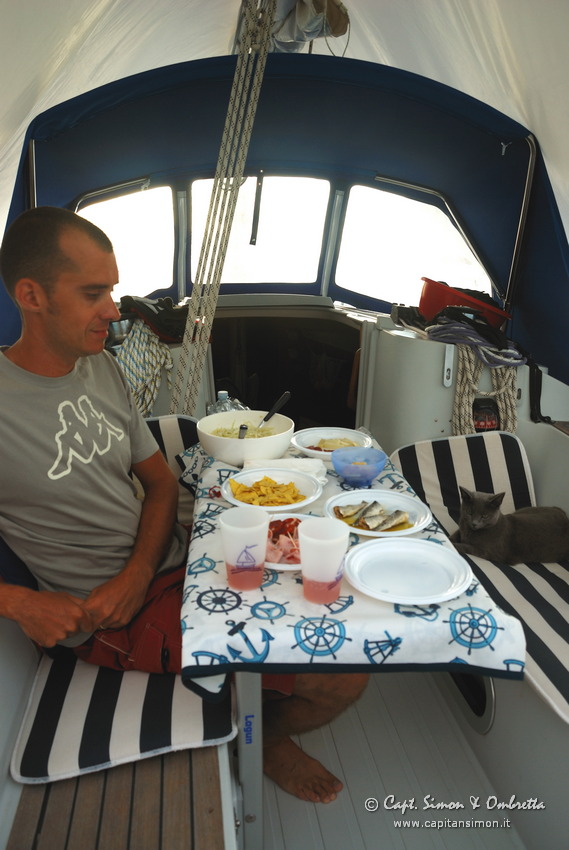 L'11 è giornata di totale relax, le scorte d'acqua, rimpinguate da una tanica portataci da Sergio, lo permettono. Quindi per me bagni a gogo, sole, foto e letture per tutti: ecco cosa rende goduriosamente bello l'ozio in barca e in rada!