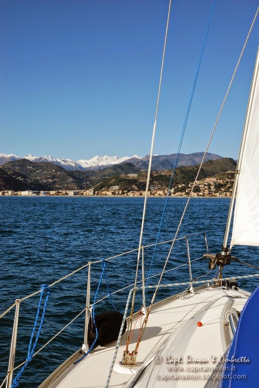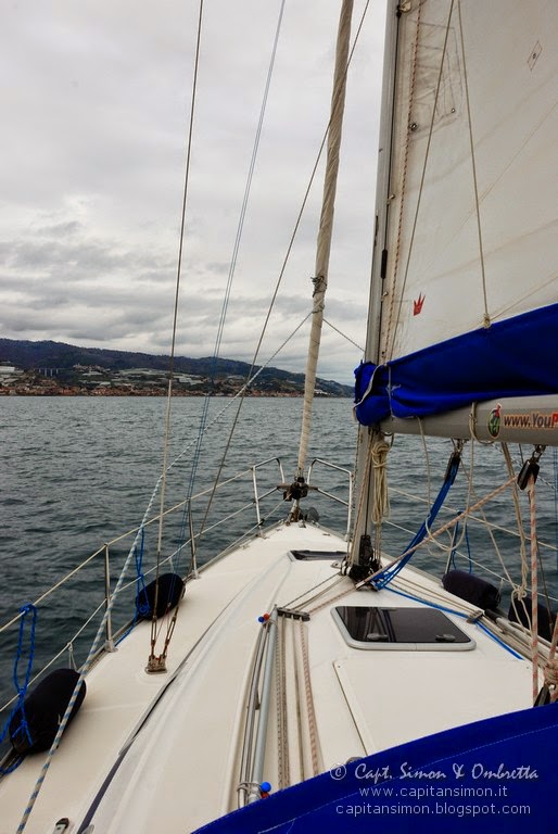 Appena lasciati alle spalle i Balzi Rossi, dalla profonda valle del Roia scende una piacevolissima tramontana che spiana il mare e mette letteralmente le ali a Lady Blues! Spegnamo il motore e ci godiamo una breve ma splendita bolina larga, che poi gira a traverso e quindi lasco, assecondando l'apertura a ventaglio della tramontana di valle allo sbocco sul mare, ottimo modo per festeggiare il primo giorno dell'anno sul mare! :D