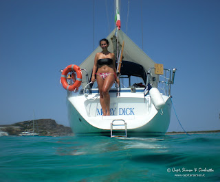 L'11 è giornata di totale relax, le scorte d'acqua, rimpinguate da una tanica portataci da Sergio, lo permettono. Quindi per me bagni a gogo, sole, foto e letture per tutti: ecco cosa rende goduriosamente bello l'ozio in barca e in rada!