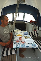 Bene, ora di qua non ci muoveremo per un pò! ;-) Mentre ci "sacrifichiamo" per ennesimo aperitivo in pozzetto, il tramonto che ci da il benvenuto è di quelli a dir poco memorabili, da solo vale il viaggio, traversate e tutto il resto!!!