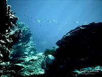 Esito?!? Innanzitutto devo ringraziare i due cari amici sardi, mi hanno semplicemente permesso di vedere i fondali più belli della mia vita! A cominciare da quelli a ridosso delle imponenti falesie, ma ancor più le secche, pareti rocciose, che dai 13-14 mt delle mie postazioni all'aspetto, sprofondavano nel blu totale, in verticale, con un senso di vertigine incredibile! Ho visto saragoni di gran taglia, graziato una cerniotta al limite, visto tanute enormi inarrivabili e concluso con un misero tordo in bassofondo... :-( si, perchè la giornata, per me è stata rovinata da ripetuti episodi di blocco inverso all'orecchio destro, proprio come al II Meeting di pescasubacquea.net ad Olbia... :-( Il che vuol dire, continuo timore che il fattaccio si ripeta, apnee tagliate di oltre la metà e assoluta amncanza di concentrazione e rilassamento. Rinunciare a poter pescare come si deve, in posti del genere, sognati per un anno intero, credetemi, è la peggior tortura immaginabile!!! Franco e Sergio, con una gentilezza infinita, esigono di lasciarci il loro pescato: corvine, bei saraghi e cefali di gran taglia. Impossibile rifiutare! Sappiano che ci abbiamo mangiato per due giorni, apprezzando davvero tantissimo! ;-) La giornata si chiude salutando le due coppie di amici, col tramonto ormai incombente, aria frescolina che ci avvolge (l'estate 2009 pare un miraggio quest'anno!), cena ben chiusi in quadrato e Ombretta che accusa i primi accenni di malessere...