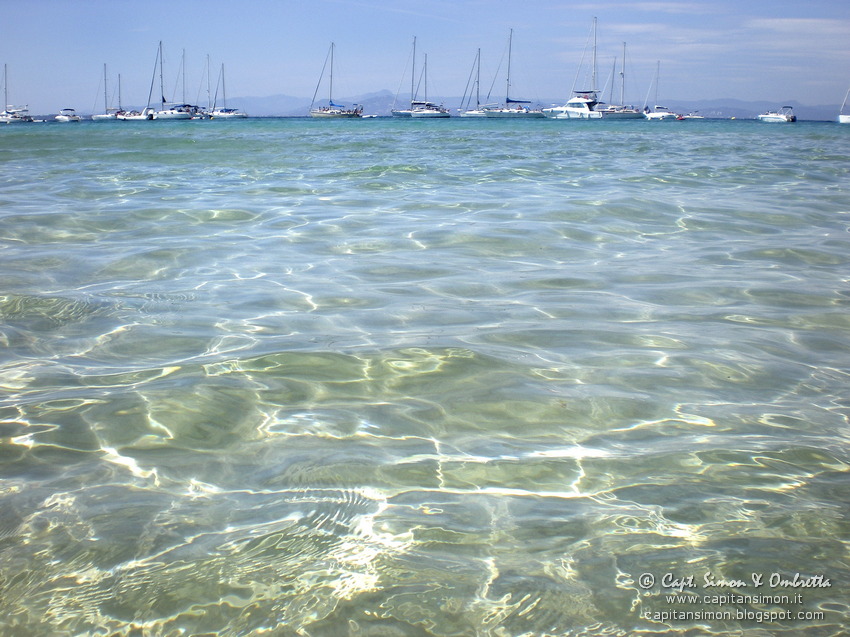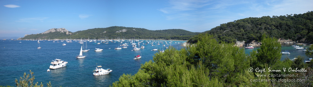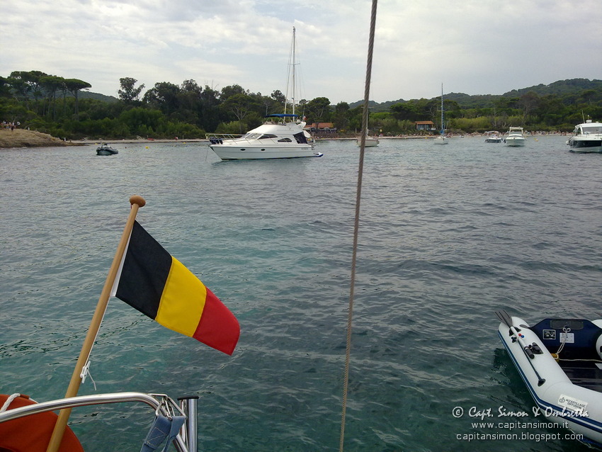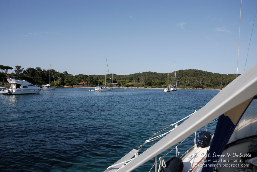 Possiamo saltar sul tender e goderci la prima scorrazzata della vacanza! :-D Andiamo col tenderino alla piccola ed incantevole baietta riparata dalla Pointe d'Alicastre: è sempre fantastica! Qui il vento per magia sparisce, il sole scalda il doppio e pure l'acqua immobile è ben più calda. Beate le piccole velette e barchette che son riuscite ad infilarvici, con tanto di ancora a poppa in spiaggia!