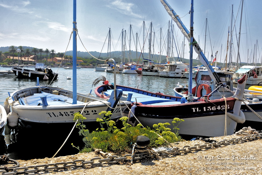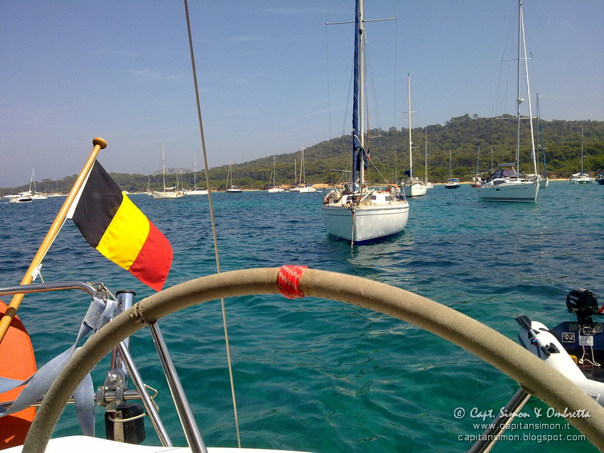 Trovare un buon posto, sufficientemente ad ovest nella rada de la Courtade, per un facile atterraggio col tender (siamo un pò a cort d'acqua...) è stato un pò più difficile rispetto ai giorni scorsi, ma alla fine non impossibile, siamo abbastanza vicini sia alla spiaggia che al punto di approdo per il paese. Purtroppo però scopriamo velocemente che anche qui le onde lasciate dai traghetti sono assai noiose, molto meno rispetto all'Anse de Bon Renaud ma in ogni caso incessanti durante la giornata...