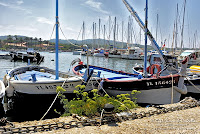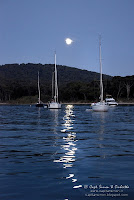 Per la sera siamo di nuovo in paese, dopo aver incontrato e giocato con un micettino assolutamente splendido ed adorabile (se lo sapesse la gelosissima Zarina!). Cena d'obbligo ad un ristorante addocchiato in giornata: La Calanque, giusto di fronte alla chiesa. Atmosfera informale, piacevole, menù a prezzo unico assolutamente onestissimo, per mangiare pesce ben cucinato. Ceniamo sempre volentieri in barca, ma almeno una puntata ad un ristorante ci voleva. ;-) E le squisite triglie alla griglia mangiate ce lo confermano! Il rientro a bordo col tenderino, in un'atmosfera immobile e sospesa, tra tutte le luci delle barche alla fonda attorno e le stelle sopra di noi, tutto a riflettersi argenteo su un mare nero e lucido, è davvero magico!