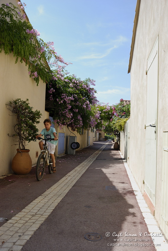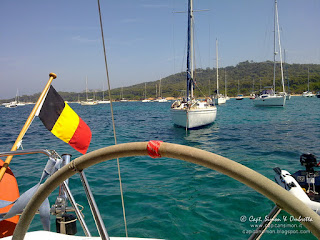 Domani abbiamo in programma di lasciare l'isola di Porquerolles, con meta programmata isola di Port-Cros e il suo famoso e, ci garantiscono, meraviglioso percorso snorkeling illustrato sul fondo, ipotizzando una nottata al paese ed una all'ansa di Port Man. Non so se troveremo facili rifornimenti d'acqua, per il gasolio tutto ok visti i consumi finora irrisori, quindi per sicurezza, facciamo un pò di via vai a terra, per riempire completamente il serbatoio d'acqua da 150 lt. Quindi, nel pomeriggio, con le taniche che abbiamo, ce la sbrighiamo con un bel faccinaggio e 3 viaggi in tender al porto.