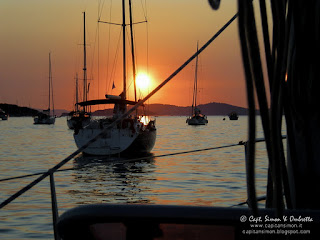 L'occasione è anche utile per rifornirci dei giottissimi croissant al burro tipici francesi per cui andiamo letteralmente pazzi... A seguire, aperitivo in pozzetto con tramonto incorporato e relax ad ammirar le stelle riparati dalla capottina. Una delle attività più affascinanti e coinvolgenti, dopo la pura navigazione, che si possa fare a bordo di una barca a vela! ;-)