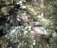 Oggi sveglia antelucana, si va a caccia! Indosso la muta, carico il necessario sul tender (check list per non dimenticare nulla stavolta: maschera, aeratore, boa, ancorotto con catena e cima, piombi, le fide pinne C4 Mustang 3 e l'ormai inseparabile Mr Iron 104) e alle prime luci lo ancoro prima della Pointe de L'Aiguade. Non vedo in pratica pesci decenti sotto costa, quindi, prima che cominci il travolgente traffico nautico, provo qualche aspetto sui 13-15 mt su un posidonieto lentamente degradante. Già dal primo tuffo avvisto un gruppo di denticiotti, di cui un paio stimati accettabili, sul kg. Viste le scarsissime uscite dell'anno, sempre in bassofondo, non ho fiato e rilassamento sufficicienti per un buon aspetto a 15 m, quindi preferisco arretrare e risalire in diagonale prima che si avvicinino troppo, per non spaventarli. Ventilo e mi rilasso a dovere e riprovo. Funziona. I dentici si avvicinano con il loro classico ritmo, di va e vieni, sembrano puntarmi decisi, poi fanno dietro front, girano a destra e sinistra, poi mi ripuntano. Tengo in mira il più grosso, tralascio i più piccoli, credo sotto il kg, che son già più che a tiro. Letteralmente attorno al corpo ho anche tantissimi salponi, che con la loro confidenza, stimolano i Non voglio azzardare un tiro al limite perchè il "prescelto" comunque si avvicina senza timore. Ma ecco l'imprevedibile! All'improvviso sento un forte schiocco, un tonfo, sottomarino e in un istante, all'unisono, salponi e dentici si dileguano verso il blu. Mezzo secondo e la prateria di posidonia è totalmente deserta!!! :-O Presumo sia stata la scodata di un grosso pesce predatore, fuori dalla mia portata visiva... Attendo e riprovo, ma non vedrò altro che piccoli labridi, tra le foglie della posidonia...