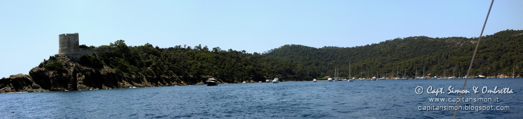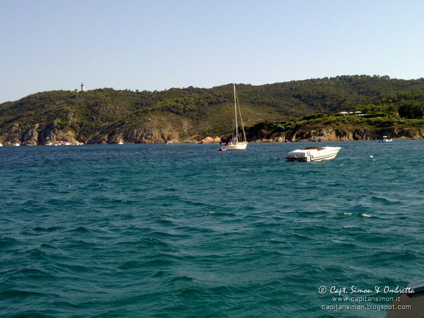 Visto che dopo 3 tentativi, la sabbia in oggetto si dimostra di tenuta pressochè nulla (anche rifacendo più volte l'ancoraggio con tutte le cautele del caso, alla prova della retromarcia ariamo beatamente), non me la sento affatto di passar qua la notte! Le previsioni parlano di un nuovo F5-6 da SO e in questa posizione l'Ile Du Bagaud ci proteggerebbe solo in parte. Con scogliera rocciosa a poche decien di m in poppa. No bueno! E altri posti liberi non c ene sono, troppe barche alla fonda. E' tardi, a quest'ora nessuno alscerà più il posto occupato, chi c'è resta, ma preferisco tentar la sorte all'Ansa di Port-Man perfettamente riparata dal SO che pian piano si sta alzando già ora. Peccato, addio snorkeling al percorso subacqueo illustrato! Addio meravigliosi fondali di Port-Cros... non credo avremo modo di tornarci i prossimi giorni visto l'andazzo e il tempo ferie ormai in scadenza. Se vogliamo provare a far tappa alle isole Lerins, prioritarie a questo punto, meglio far rotta ad Est.