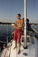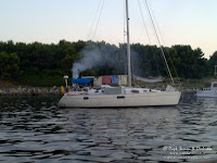 Trasferimento noiosissimo! Il vento da SO, pur se in cosntante aumento, ci si piazza inevitabilmente in piena poppa(sembra sempre una barzelletta...) e solo raramente riesco ad angolare un pò la prua per poter aprire il fiocco e farlo portare un poco. L'apparente è comunque scarsissimo, al limite del nulla...