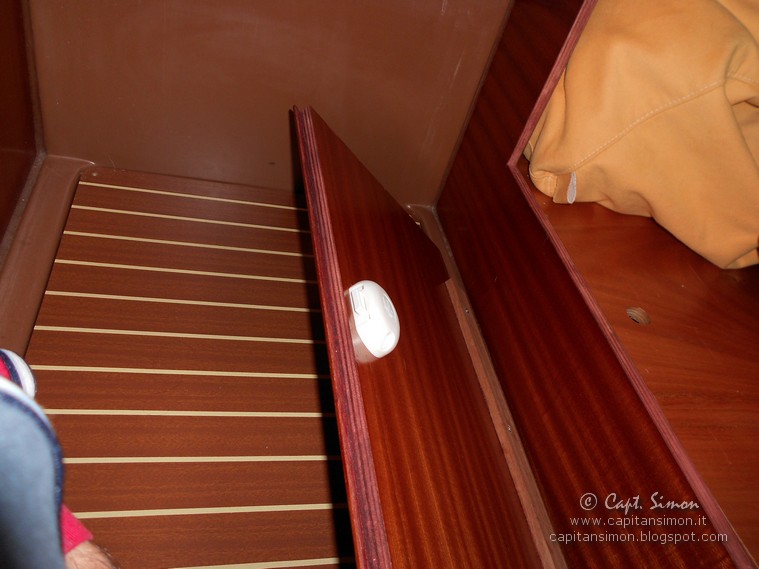 L'unica accortezza, per non compromettere l'assetto della barca (sulla precedente Moby Dick, tutta la cuccetta di prua era adibita a ripostiglio, ma l'assetto ne risentiva...), rimane l'obbligo di usarlo solo per materiale voluminoso e leggero, tipo lenzuola, coperte di pile, cerate, giubbini sovrannumerari etc..