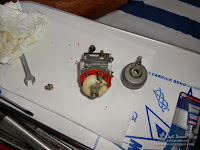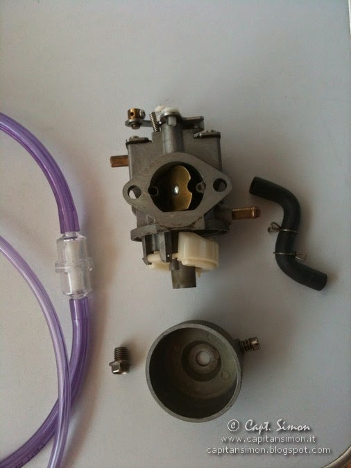 Non mi resta che immergermi... nella riparazione del carburatore del fuoribordo del tender, che ovviamente perde benzina a gogo, visto che quel sigillante rosso Bostik non ha retto nemmeno poche ore alla benzina e si è gonfiato a dismisura, ammollandosi come una gelatina...