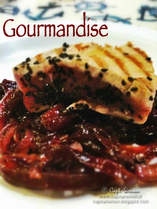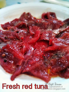Ci concediamo una pausa-merenda, a base di tenerissimo carpaccio di tonno marinato.