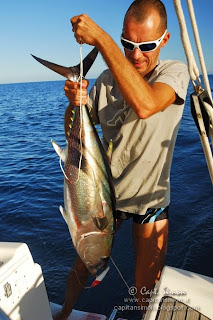 Uno schiocco secco, netto, annuncia per il tonno la libertà, per me la fine dei dolori alla schiena e alle mani e per tutto l'equipaggio la fine di un'avventura indimenticabile! E, credo, irripetibile.