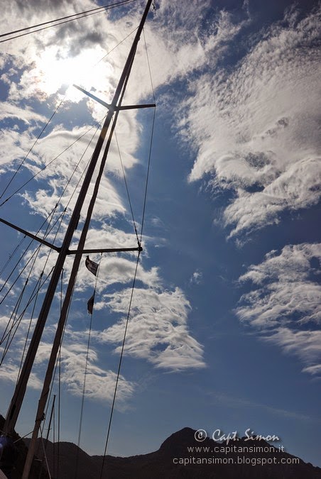In realtà, traversata, quindi 6 giorni di sosta forzata, con vento continuo, su un mare marrone che ci ha negato pure i bagni, quindi, viste le previsioni incerte, fuga alla prima finestra meteo disponibile...
