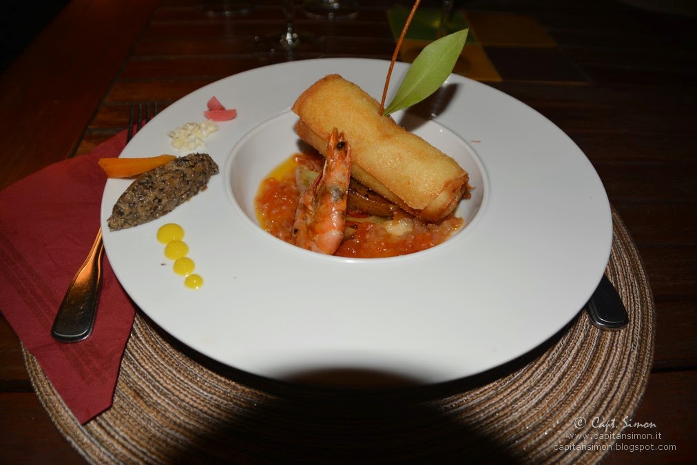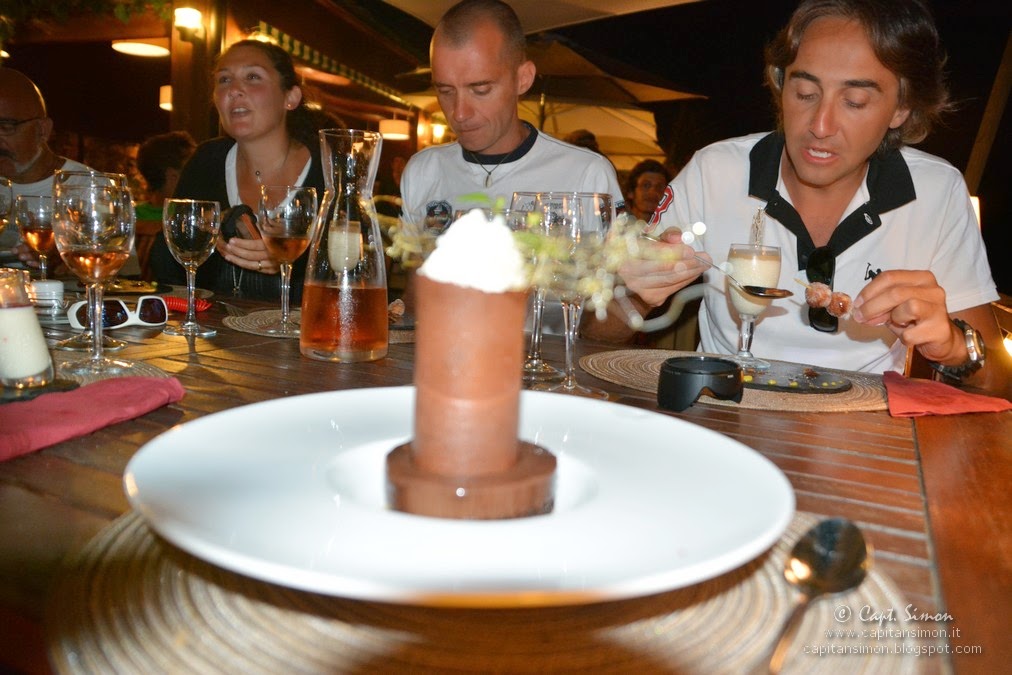Io e Ombretta non siamo proprio fanatici delle cene al ristornte... per mille motivi, in vacanza preferiamo un abbondante aperitivo e una raccolta cenetta in barca alla mondanità dei locali (anche eprchè spesso siamo in rade sprovviste di locali a terra...) ma aspettiamo ogni volta con trepidante attesa i piatti raffinati e pur saporitissimi, preparati con cura artistica del Bon Espoire!