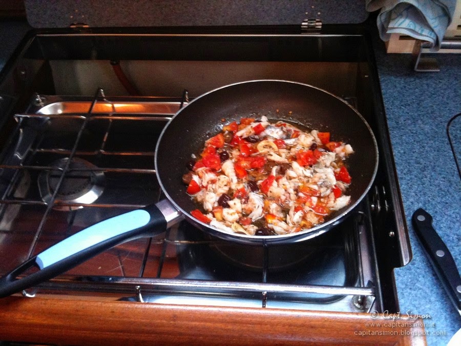 Grazie ad un'uscita di cacciasub procuro un saragotto per cena. Nulla di che come taglia, ma Ombretta riesce comunque a trasformarlo in un saporitissimo e ricco sugo per una pasta davvero al sapore di mare!