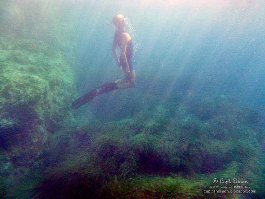 Ovviamente, dopo l'ora tarda fatta la notte prima, non ce l'ho fatta a svegliarmi così presto e di giorno non ho osato attraversare a nuoto il campo boe per raggiungere la zona di pesca all'esterno.