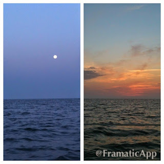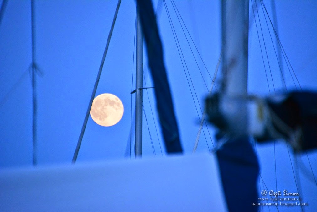 Intanto, pur se in porto, al tramonto del sole si contrappone uno splendido sorgere di luna!