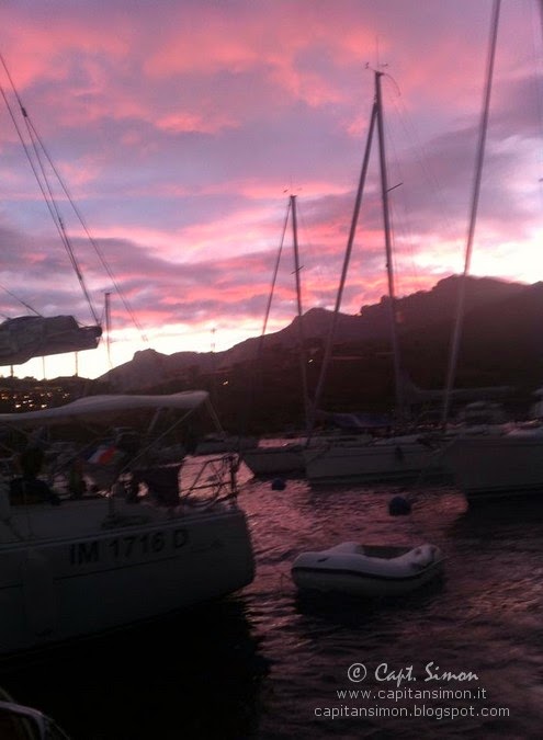 Dal golfo del Leone sta scendendo una botta mica da ridere... le carte di Lamma segnano per 3 giorni colori inquietanti, con un Mistral poderoso ed ode previste fino a 3 m ed oltre. Ma sopratutto mi inquieta la deviazione che sembra prenderà il vento sulla costa ovest della Corsica: da NW dovrebbe piegare a W e poi a SW, arrivando qua come F8, ma sopratutto con un'imponente onda lunga!